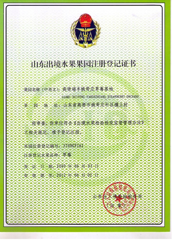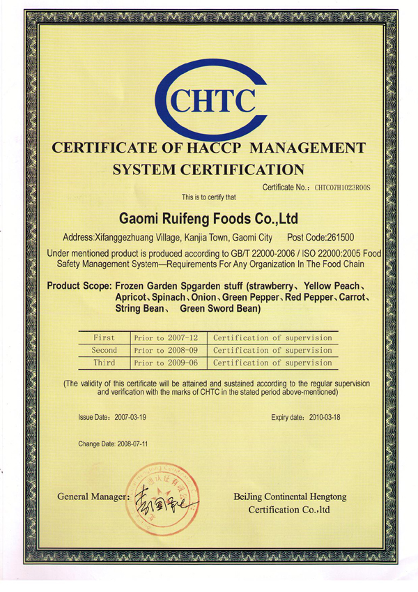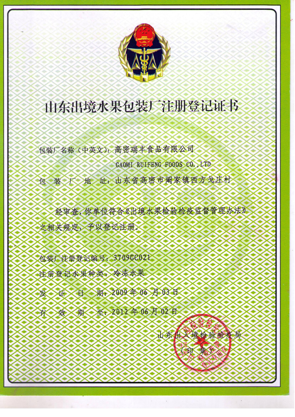 • 冷凍蔬菜衛(wèi)生注冊證書